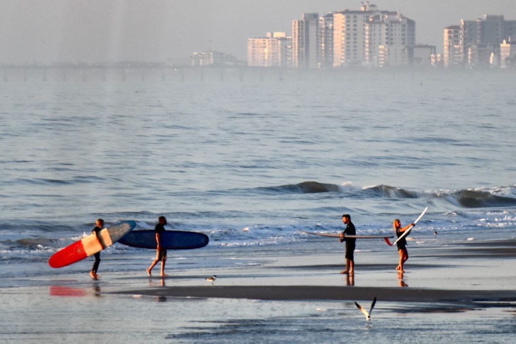 Good Morning, Friends! Saturday’s first report shows clean, shin high +/- surf with light SW wind. At report time, the waves are very small and mid tide is barely rideable. Perhaps it could bet slightly better at low tide. Bring the small wave gear if you’re taking a look, and check back for our next update!