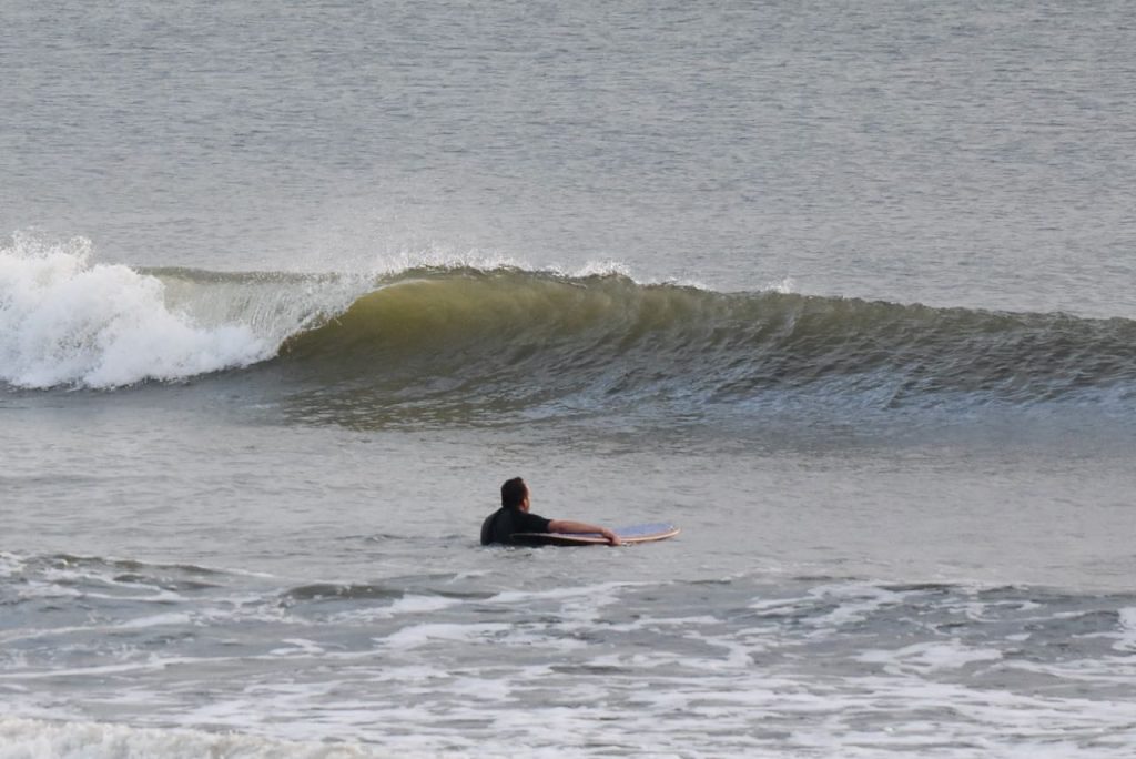 Good Morning Friends! Our first report shows clean surf in the knee high+/- range with moderate W wind. At report time, our tide is low and incoming with small weak waves. Grab a floaty board, give it a look, and check back for our next update!
