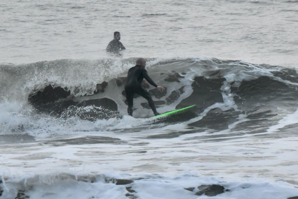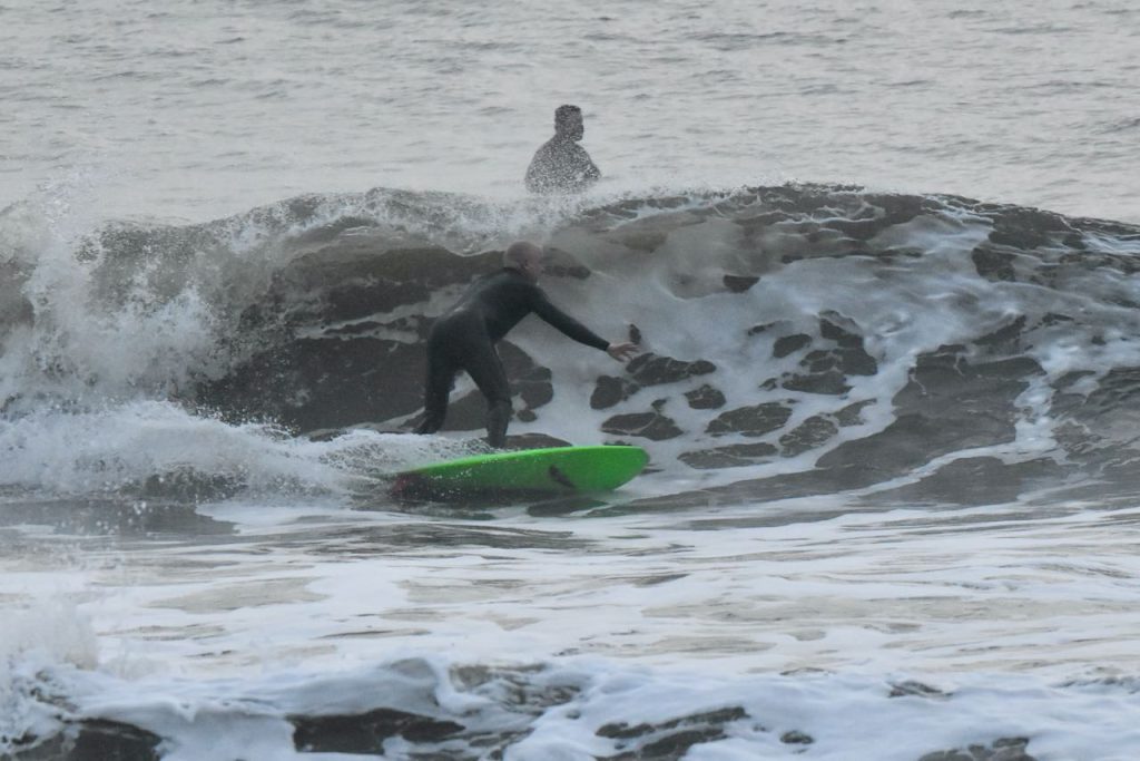 Happy Thursday, Friends! Our first report shows waist to chest high range surf and moderate SW wind. It is foggy with semi choppy, long period lines that look difficult to surf. If you’re giving it a look, grab your full suit, gloves and a hood, and check back for our next update.