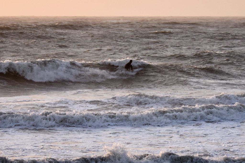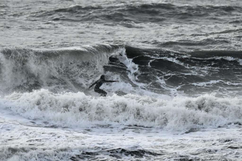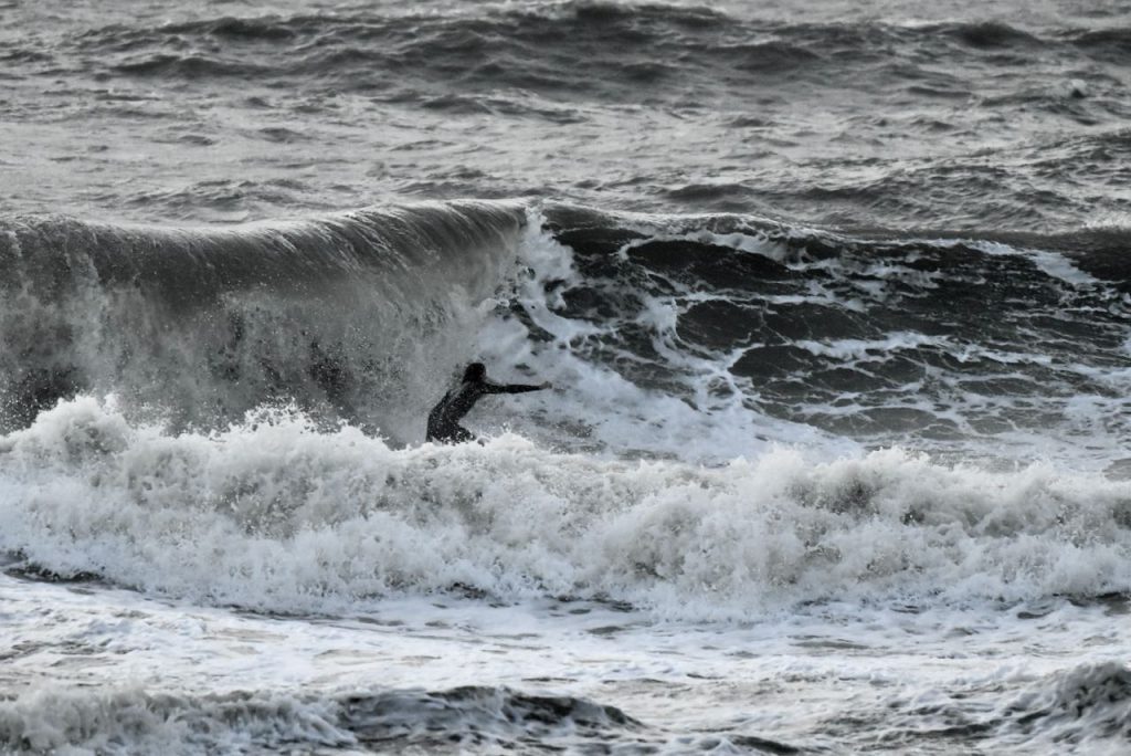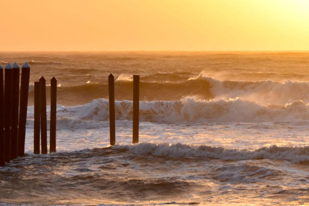 Good Morning, Friends! Thursday’s first report shows surf that’s head high to a few feet overhead with very strong NE winds. At report time, it’s choppy with a few sets washing out the line up. It is surf able if you don’t mind drifty Nor’easter conditions. Give it a look, and check back for our next update!