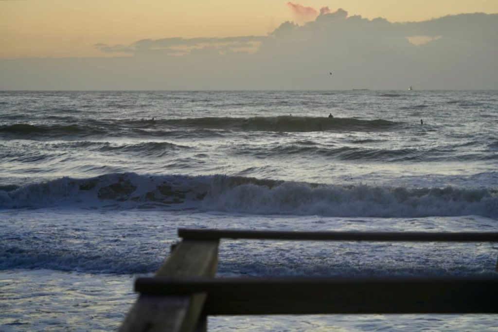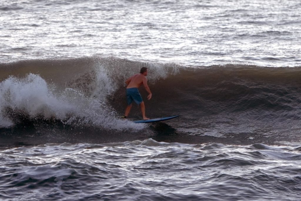 Good Morning, Friends! Our first report shows continued large-ish surf in the waist to head high range with light NE winds. At report time, with lighter winds, and the higher tide, it’s not great but it’s rideable and occasional waves look fun. Give it a look and check back for our next update.