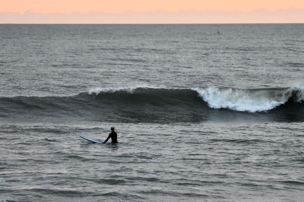 Good Morning, Friends! Wednesday’s first report shows semi clean waist high+/- surf with moderate SSW winds. At report time, the waves are soft with high tide conditions. Regardless, it is surf able if you’re thinking about taking a look and check back for our next update!