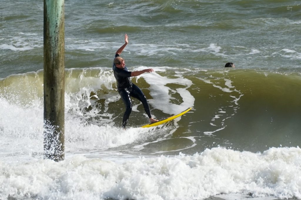 As most of you know, the former Poles were removed, [a few years ago] by the angry sea. The 2016 and 2017 Hurricanes, Matthew and Irma did most of the damage. At this time they are being rebuilt by the Federal Government, Naval Station Mayport. For your own safety, the job site manager ask for surfers, swimmers, or foot traffic keep out of the construction area.